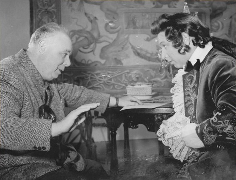 Anna Magnani é appena arrivata sul set mentre altri attori sono già pronti nei loro costumi.